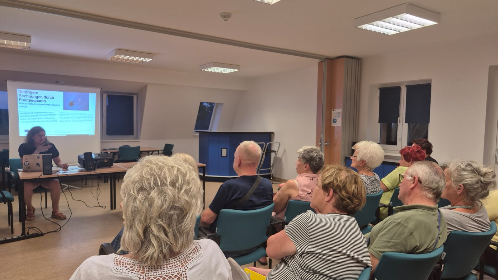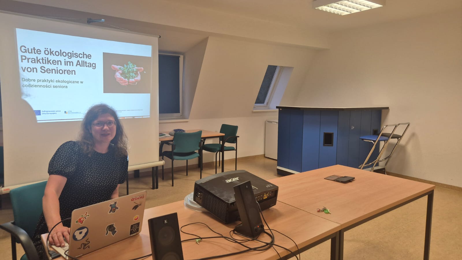 Następnie przedstawiciele organizacji goszczącej – Verein zur Förderung von Beschäftigung und Qualifizierung Bad Freienwalde e.V. – zaprezentowali swoje inicjatywy na rzecz seniorów, w tym projekty z zakresu edukacji ekologicznej, cyfrowej i pozaformalnej.